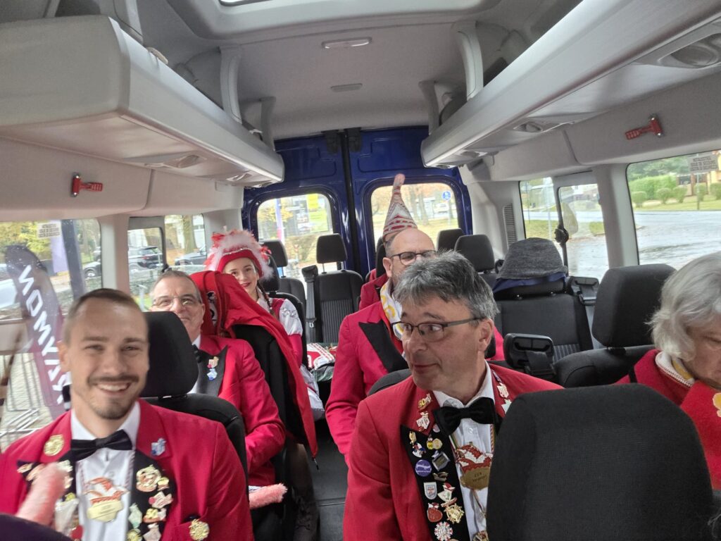 Im Bus von Schulz-Reisen (v.l. Präsident Maurice Schadow; v.r. Organisator Frank Frenzel)