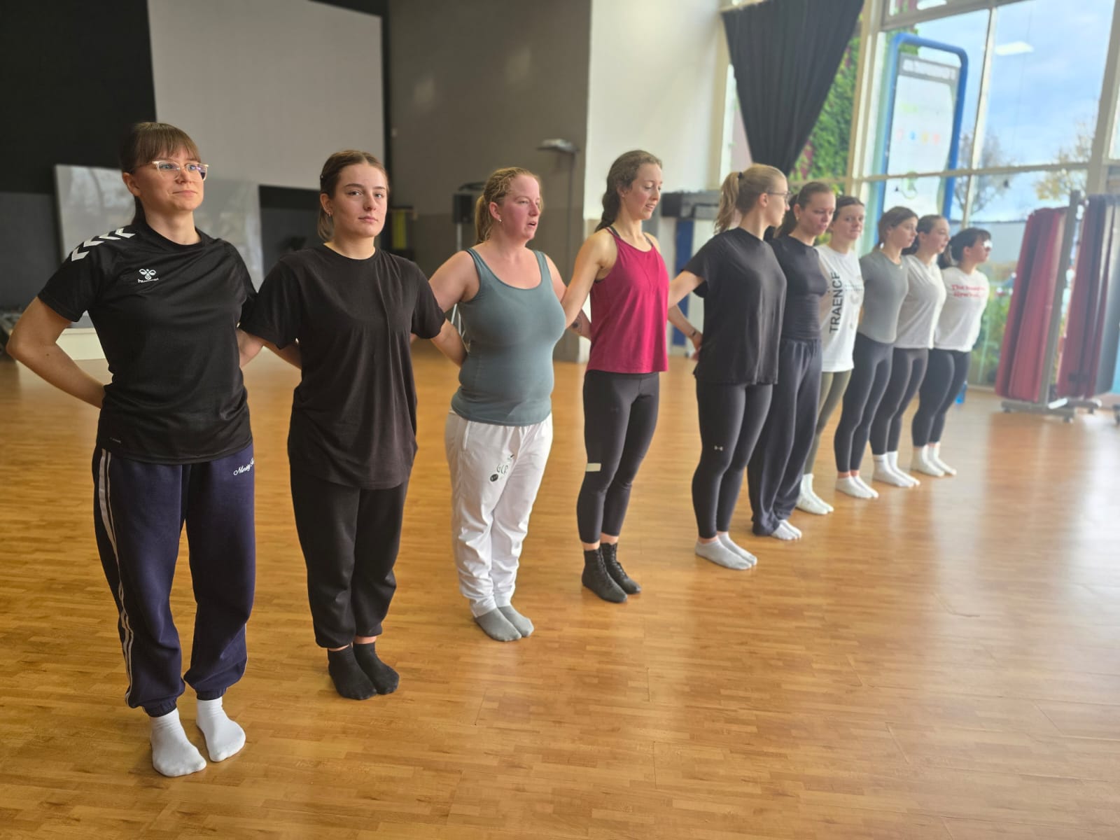Den 02.11.2025 verbrachten die Tänzerinnen und Tänzer vom GCR schweißtreibend. Um 10 Uhr versammelten sich Tänzerinnen der kleinen und großen Garde sowie die MännerInnen zu einem Spezialtraining im Figur Studio in Rangsdorf. Unterstützung bekamen wir hier von unserem ehemaligen Tanzmariechen Muriel Lüdtke und ihrer Trainings- und Tanzpartnerin Marlen. Beide sind Cheerleaderinnen aus Großbeeren und haben sich der Aufgabe gestellt, uns einfache Hebungen beizubringen.